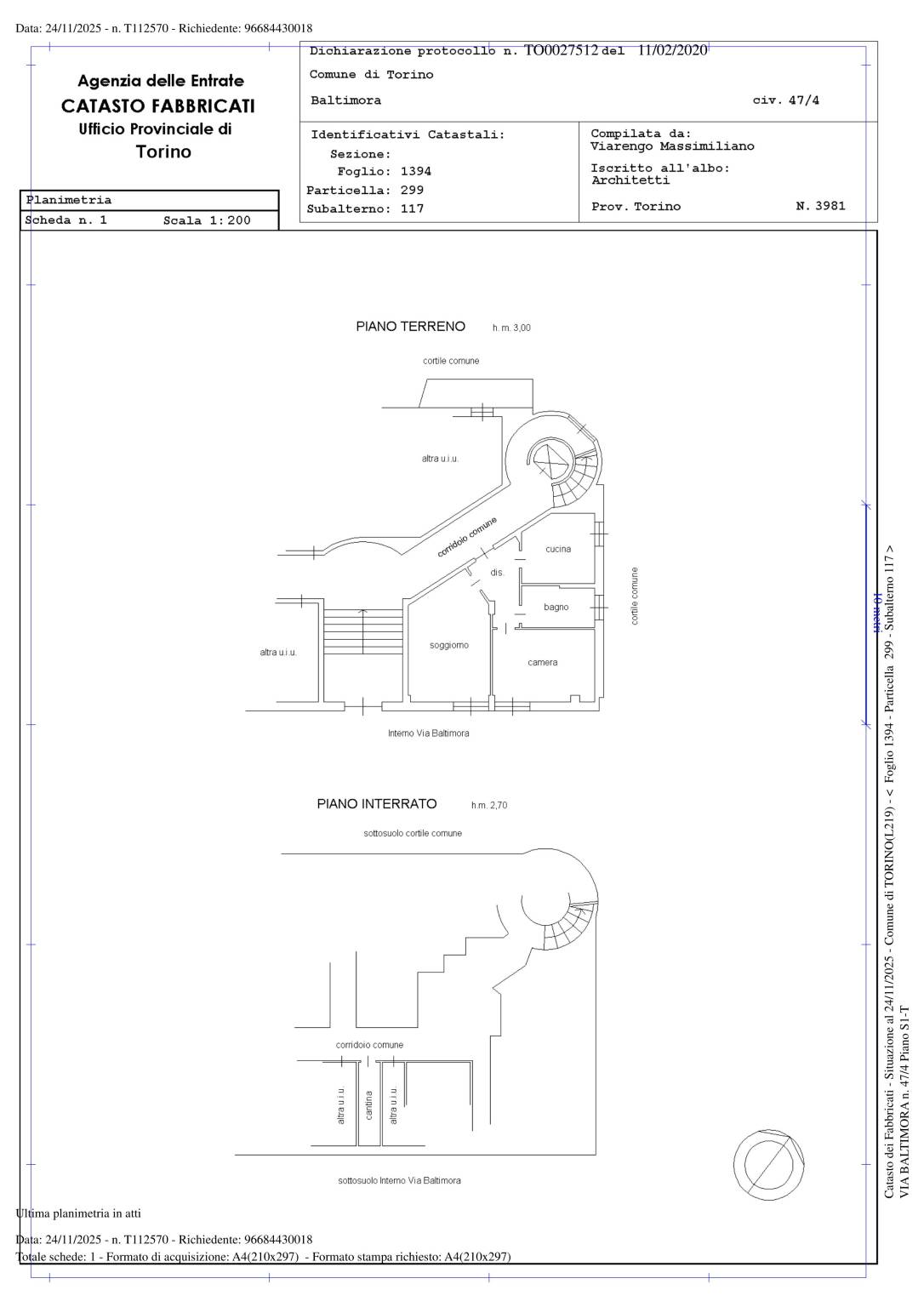 | Cantina - piano interrato | 6 Mq | 2 Mqc |